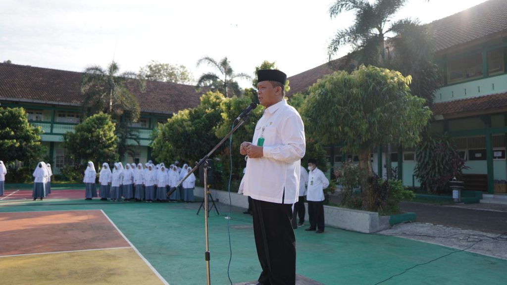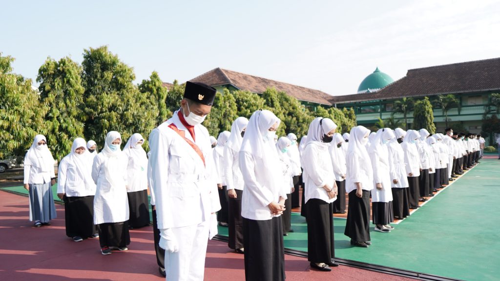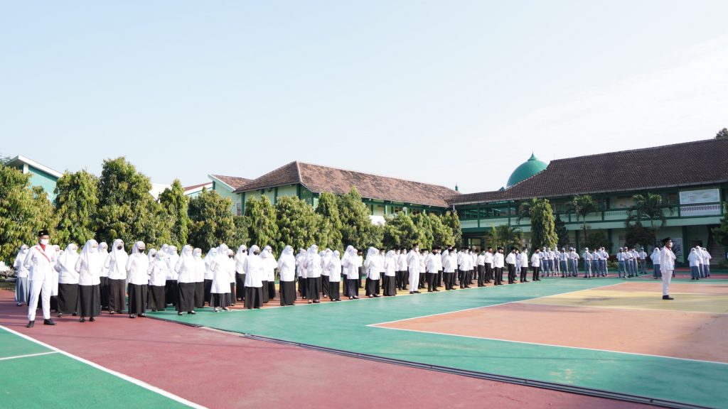 Jepara (man1jepara.sch.id) – Selasa (17/08/2021), Ditengah keterbatasan pandemi covid-19 MAN 1 Jepara melaksanakan upacara HUT RI ke-76. Berbeda dengan tahun-tahun sebelumnya, walaupun di tengah pandemi, upacara HUT RI ke-76 tetap terlaksana dengan mengikuti protokol kesehatan secara ketat. Sebelum memasuki madrasah, seluruh peserta upacara diperiksa suhu tubuhnya oleh petugas dan wajib memakai masker.